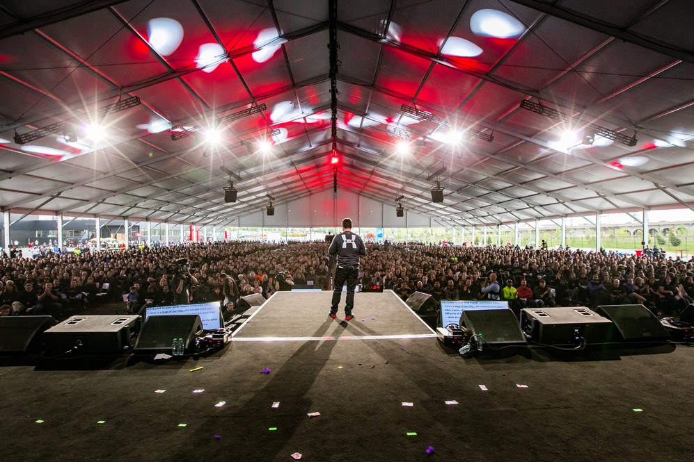 Despite the rain, more than 2,000 global Under Armour teammates gathered under the tent for a day they'd never forget. Vanilla Ice, C&C Music Factory, Nelly, and Kid Rock took teammates on a trip back to the '90s, recalling the era when the brand began.